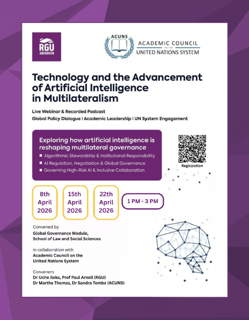 Technology and the Advancement of Artificial Intelligence in Multilateralism Webinar Series (ACUNS and Robert Gordon University)